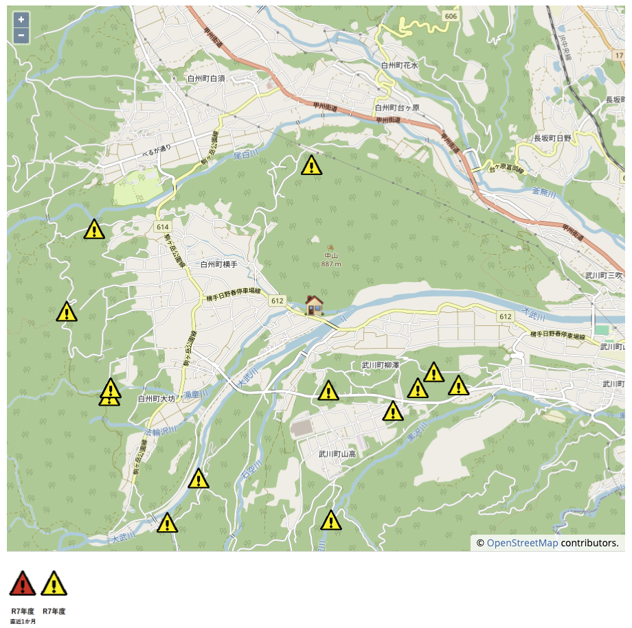 令和7年11月 26日現在地図です。クリックで山梨県のサイトへ飛びます 地図中心の🏠️マークがペンション駒城です